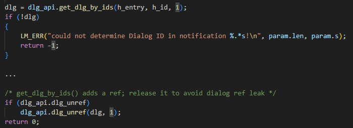 > Didn't know that get_dlg_by_ids function adds a ref internally so the
